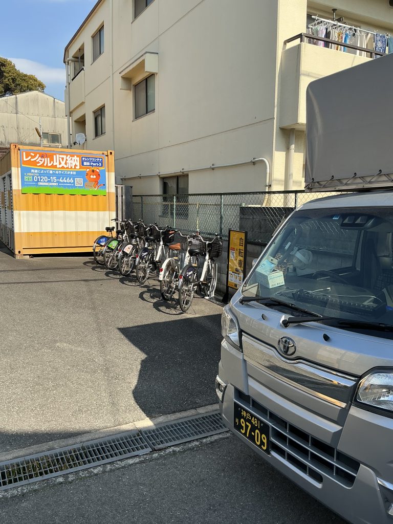 最後に園田エリア、東園田町にはR-SHARE OsakaWestがあります。園田もまた、入り組んだ住宅街が広がるエリアです。特に駅からの道中は歩行者や自転車が多いため、軽トラの低速走行テクニックが試されます。