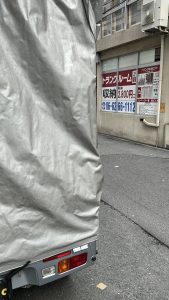 続いて向かった「グループホームしおかぜ」は、港区ならではの心地よい潮風を感じる環境にあります。こちらでは、長年愛用されてきた木製のタンスをお運びしました。大切な家具を少しの衝撃からも守るため、分厚い単身引越し用毛布で全体を包み込み、さらにその上から伸縮性のあるゴム入りパッドを被せてしっかりと保護しました。幌付軽トラックの荷台高175cmという余裕のある空間のおかげで、背の高い家具も立てたまま安全に輸送できます。