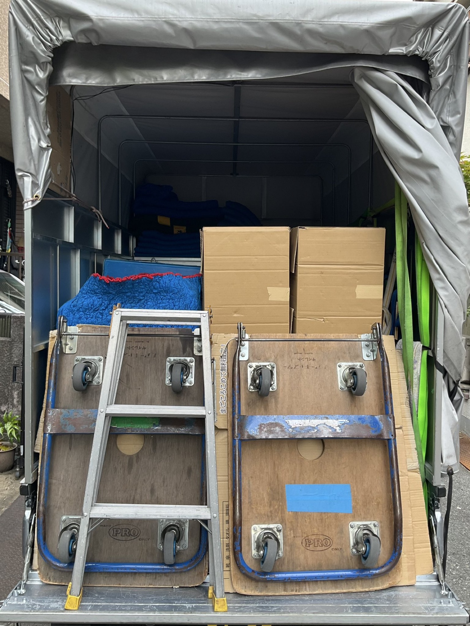 この一言から今日の仕事が始まりました。朝の尼崎はまだ少し空気が冷たく、軽トラックのエンジン音が静かな住宅街に響く中、今回のご依頼主さまとご対面。行き先は寝屋川市。単身のお引っ越しですが、家具や家電はしっかりそろっていて、荷物の量も軽トラ満載コースといった感じ。いつものように「積めるだけ積む」といういまだ運送ならではのスタイルで丁寧に積み込みをさせていただきました。