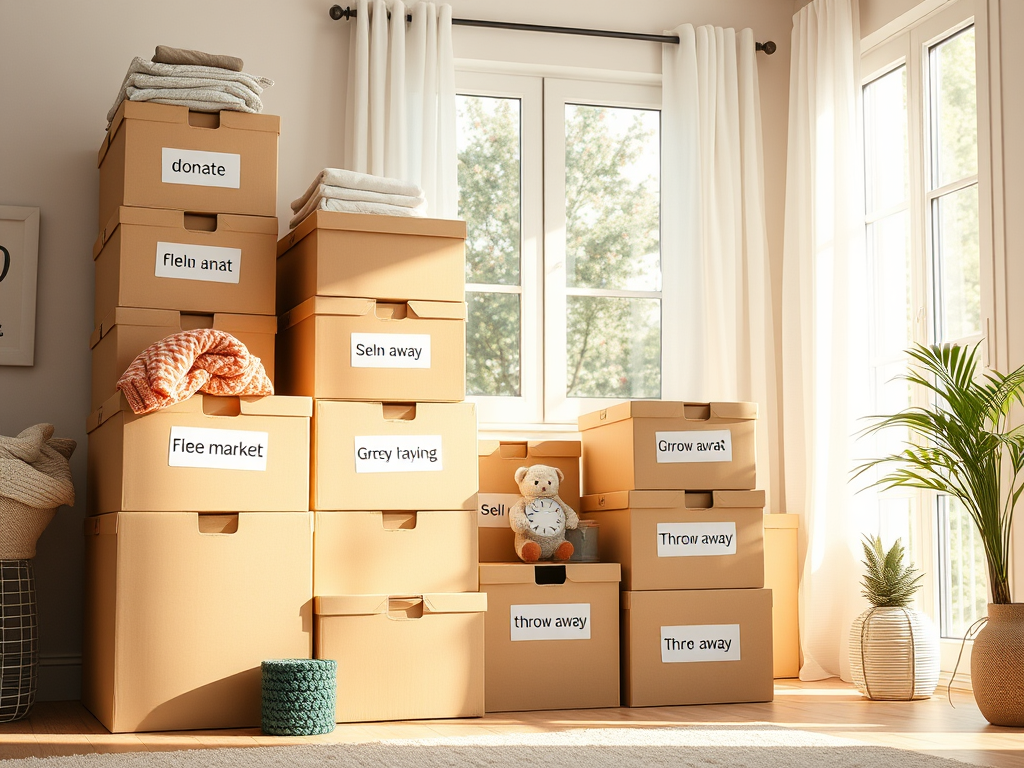 実家片付けを効率よく進めるには、最初に「売る」「寄付・譲る」「捨てる」の3つに大きく分けるルールを決めておくと迷いにくくなります。 売る候補はフリマアプリまたは宅配買取、捨てる候補は可燃ごみ・不燃ごみ・粗大ごみに分ける、といった整理を紙に書き出しておくのもおすすめです。